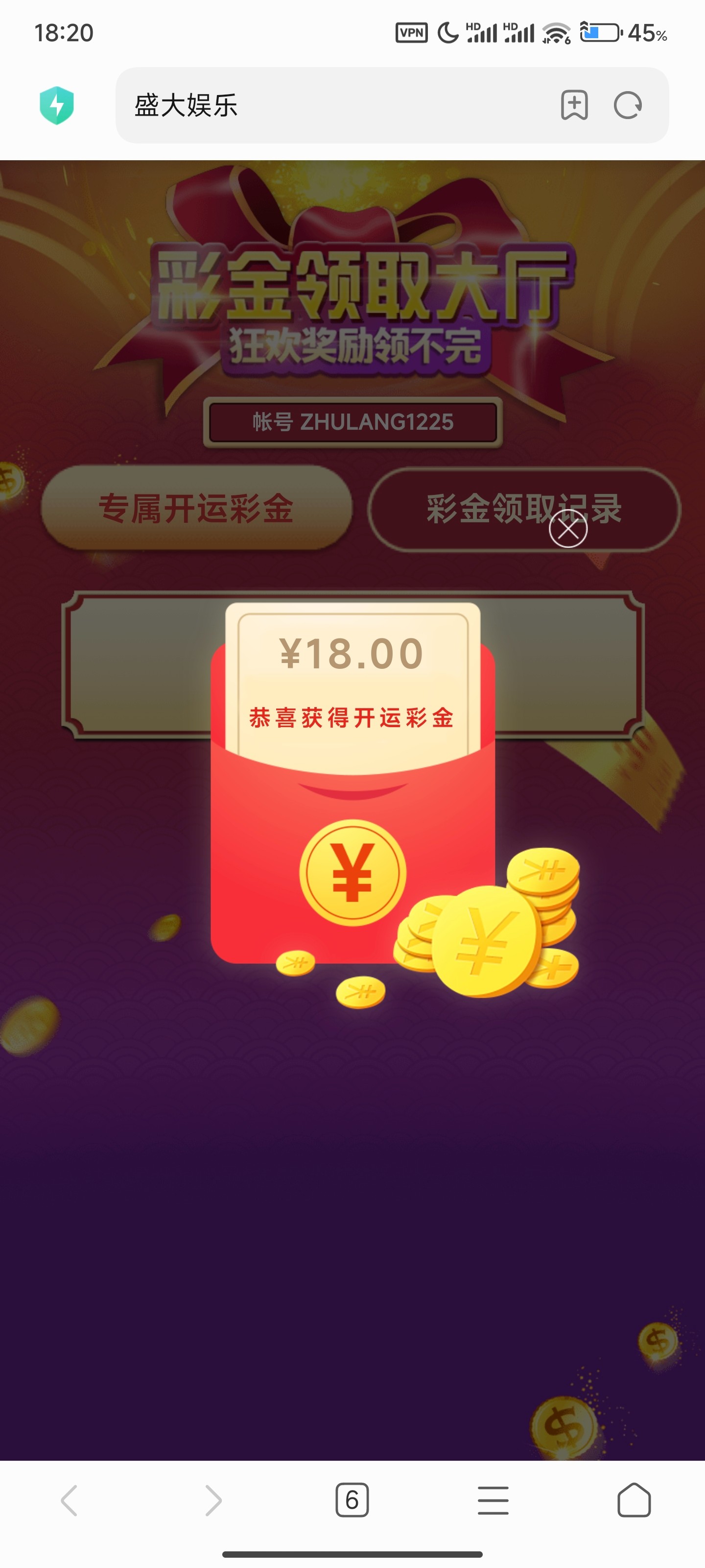 盛大6.18回馈领到了