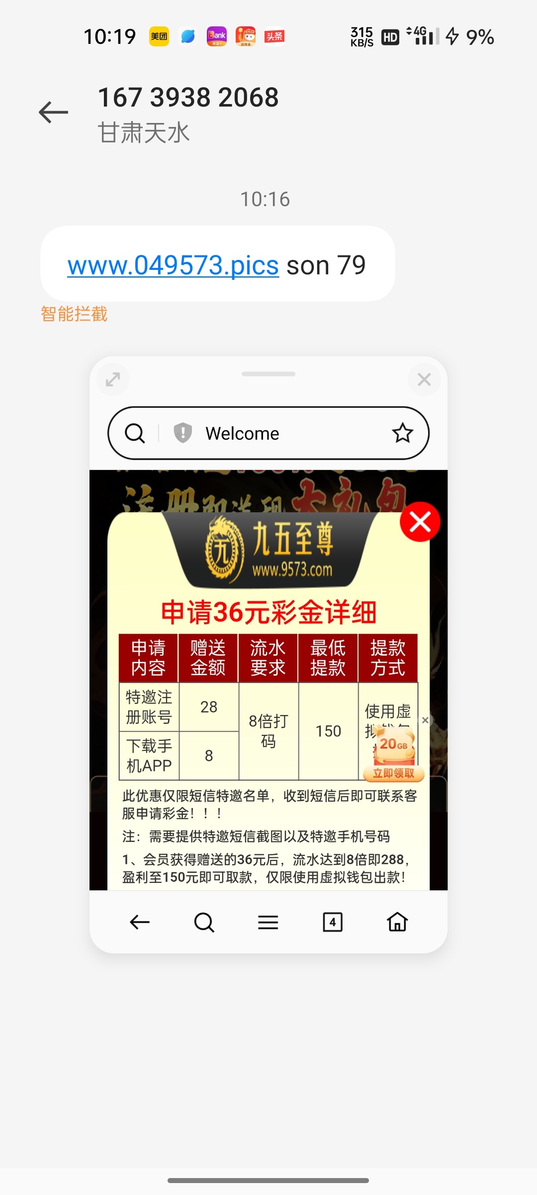 网址在图片里,收到短信去注册,验证手机号绑卡后优惠里自己领取。
