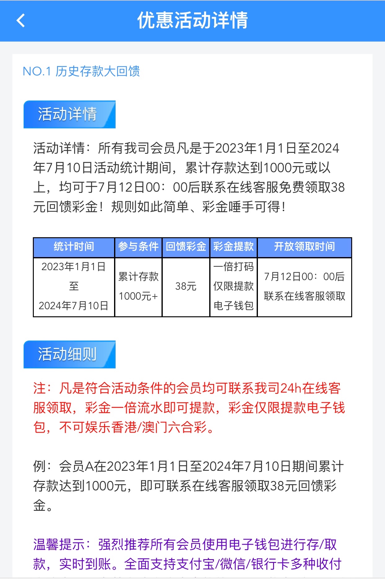 小蓝平台回馈38彩金