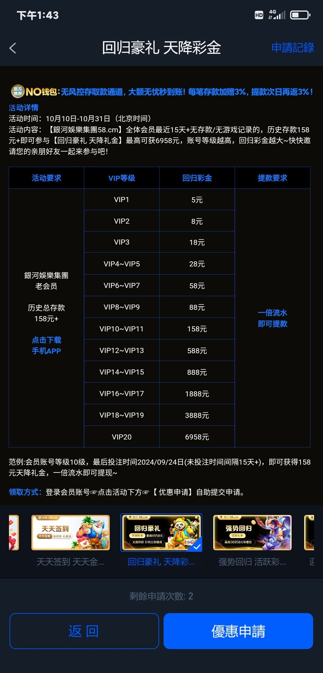 有号充值过的去看看,活动里自助申请,链接https://www.6958hd.com/