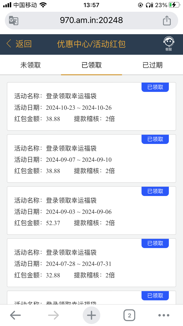 白嫖100.半年多没充值过了,v4掉到没等级了,平均两天登陆一下,有时三四天登陆一次,就是不充值,这狗台子赢一次输半年,小伙伴们就按这个规律登陆,平均一个月会送个一两次,有就有没有的请嘴上留德别乱喷,地址8733.com
