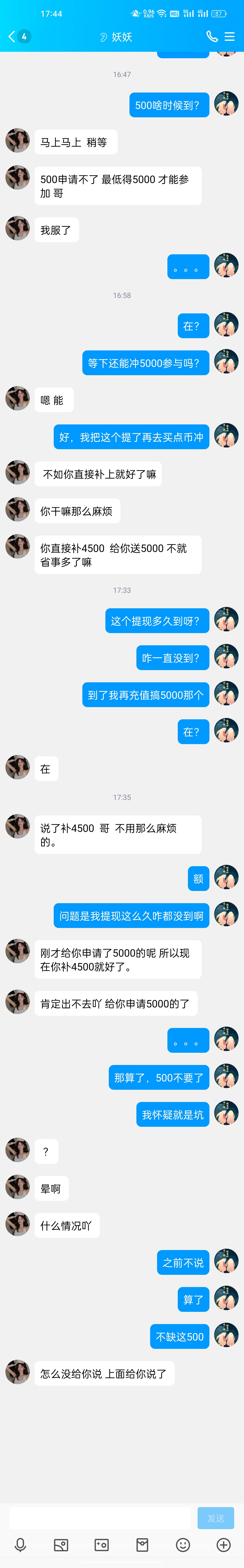 78v黑了,小蓝台基本都黑了,别再玩小蓝台了,不看新老全都开始都黑了打电话过来说送免费彩金,结果一申请就是没,然后说有冲多少送多少,冲了500又说5000起,然后500打到750提现,结果提现不让提现,让冲4500补齐5000才能,跟本就是黑台,冲了另外4500也不可能提现,别再冲小蓝台了,