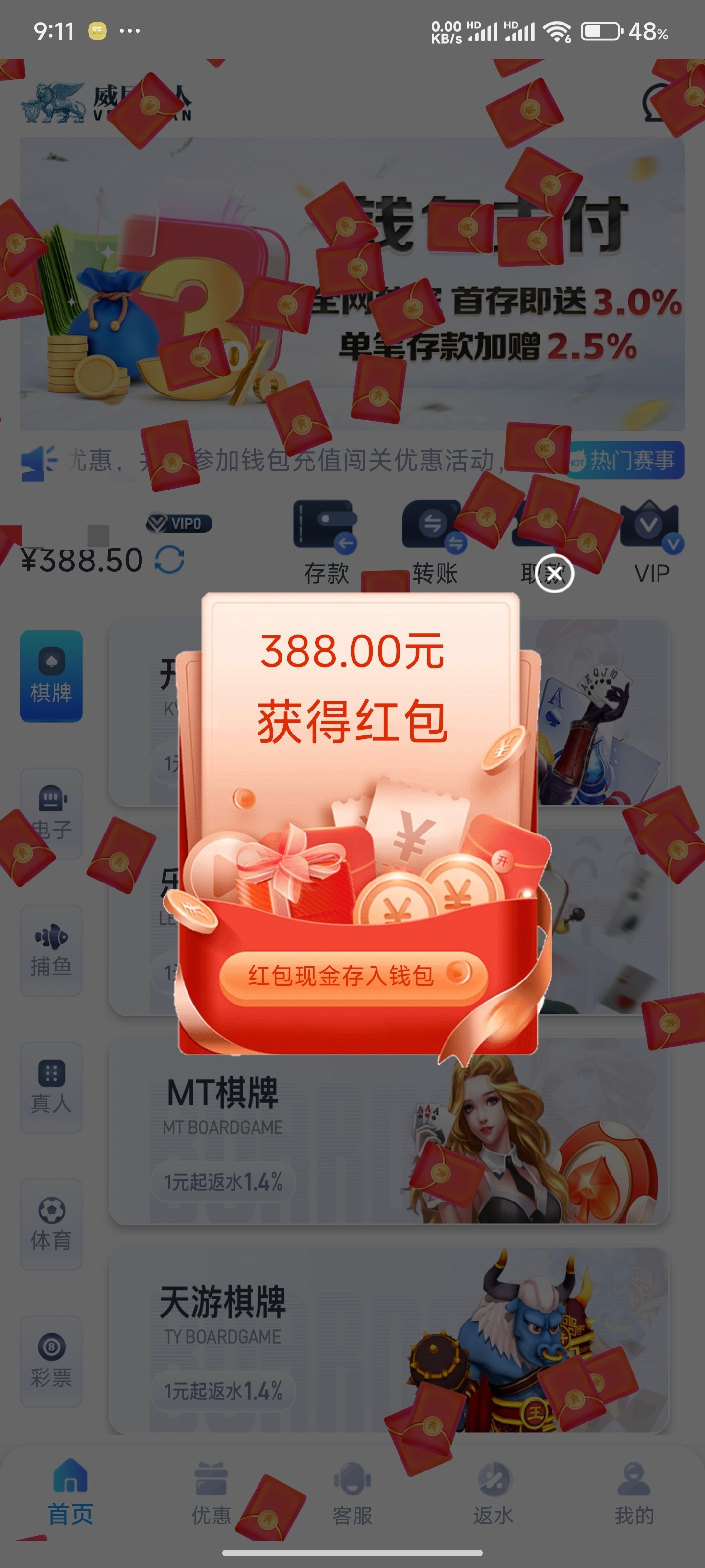上个月第一次领没充值过领了388,前两天再去问客服碰瓷,说充了三百等四天就送,今天第三天等不及了去试试,给我送了哈哈
