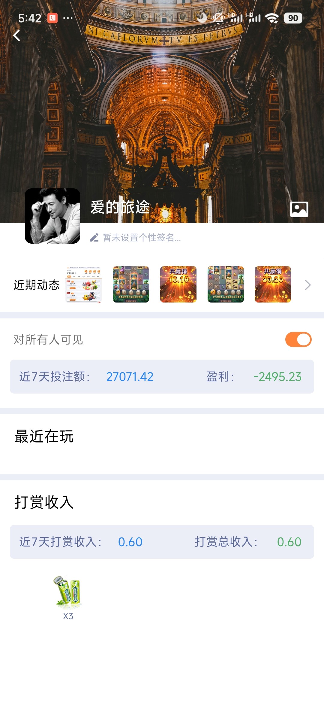 这台子从9月份玩到现在,没有提过一次,最多100上到300,之前输过1000,这两天又输两千,我一直玩的电子,心想都输这么多了,总会放水了吧,结果充一次死一次,这种台子还有必要坚持吗