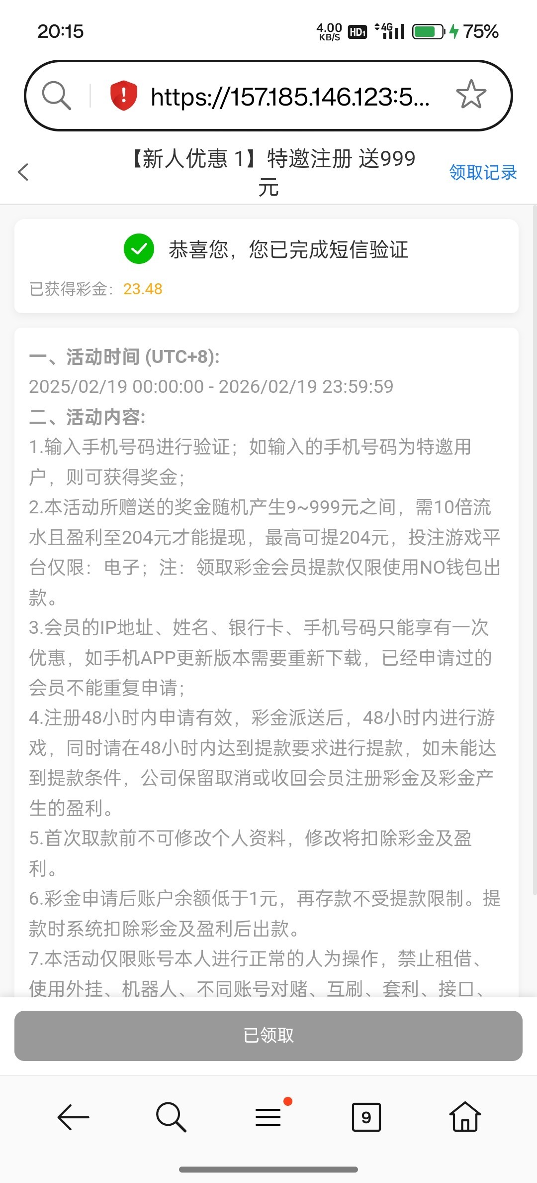 我领了23给我发的短信,没打出来