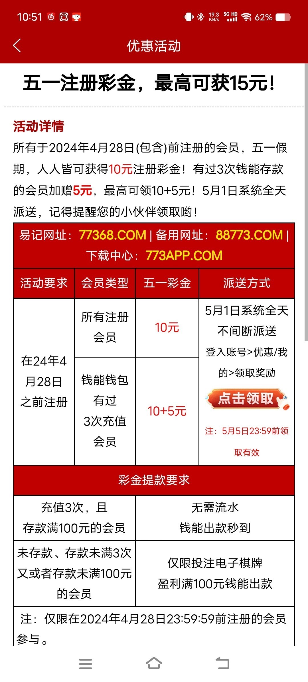 钱能台5月1号回馈彩