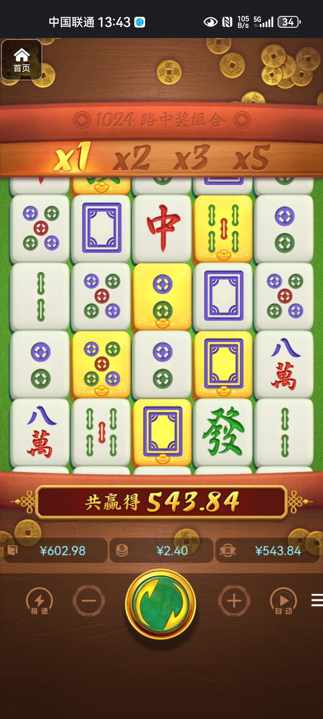 三次免中免36次免费,爆了两百多倍,打流水马上要挂壁了,继续玩麻将又爆了,麻将真的有水