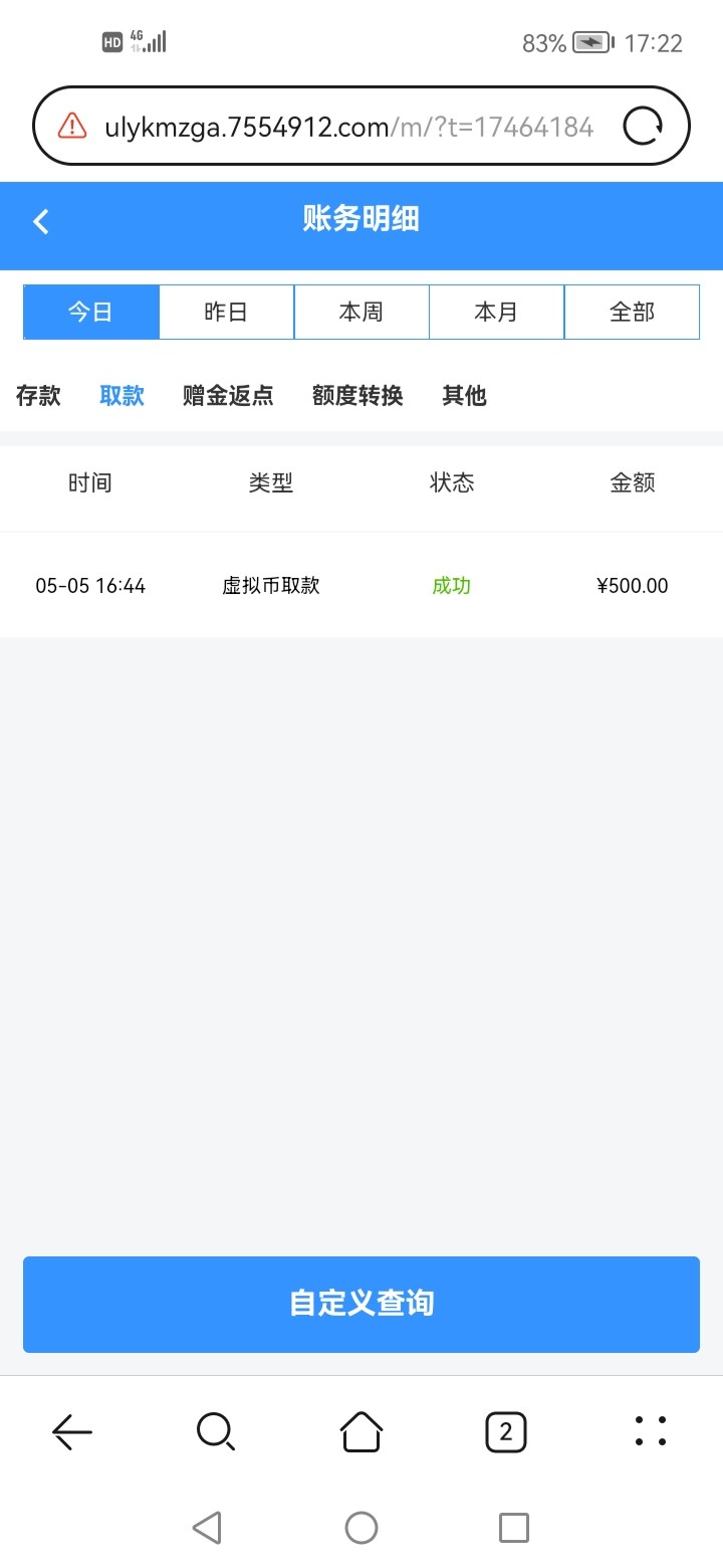 登陆进去看到号里有两块,然后我打上了400不给出让存100存进去打上500想着先提500试试结果不给出扣了224给我留了288妈的我存100打1500流水就给出288