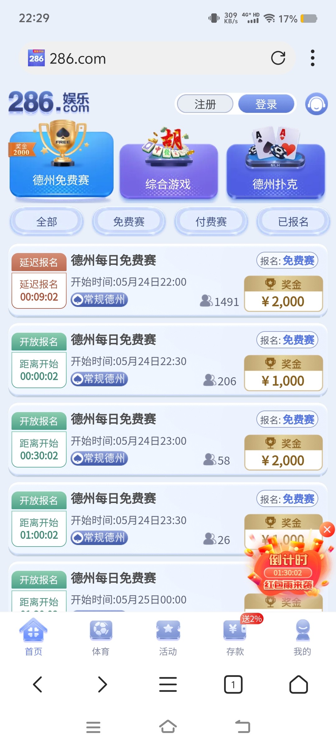 注册后可以参加免费赛,前50名得20元,还可以免费参加一次付费赛,前100名得50~5000多元,网此 286.com