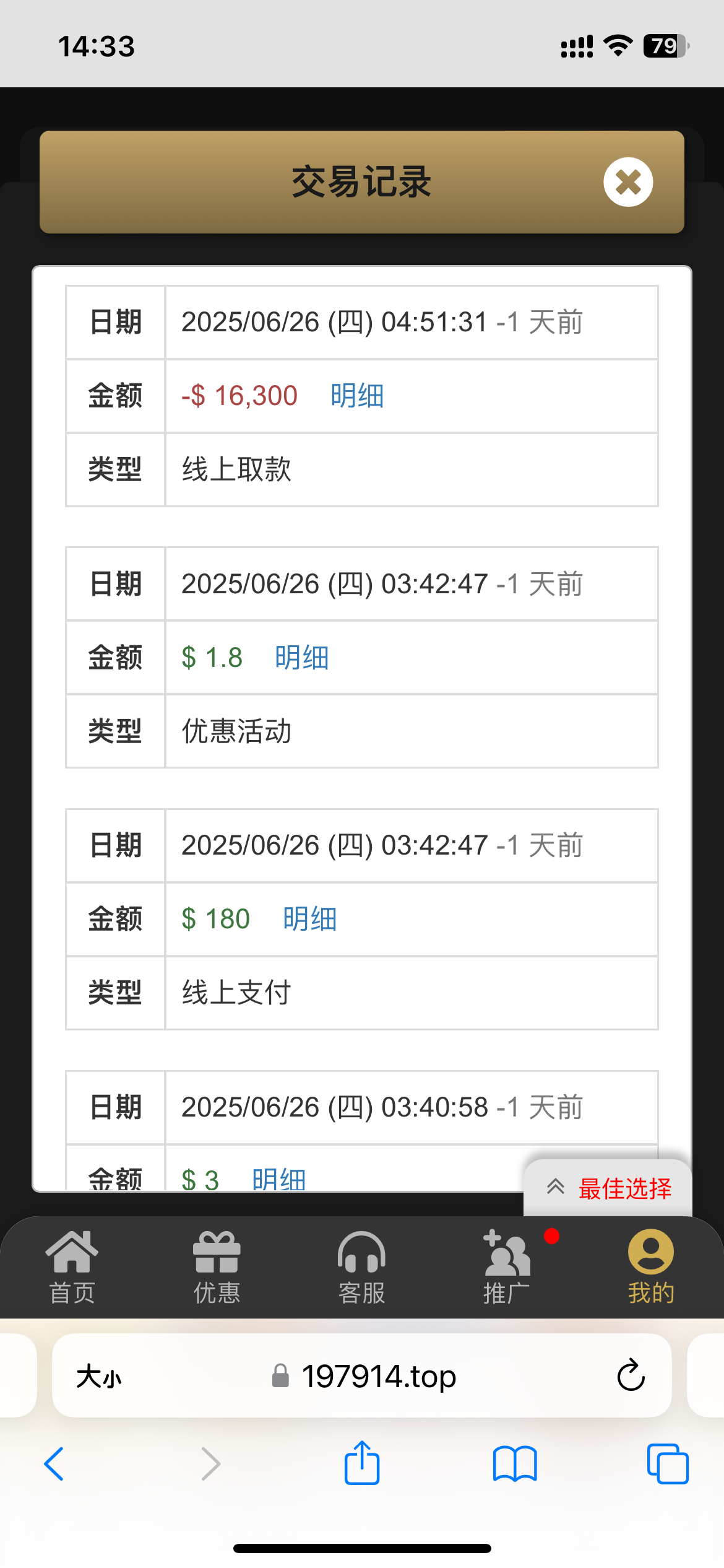 你他妈的明明冲的180  然后送的1.8的存款优惠   沙币