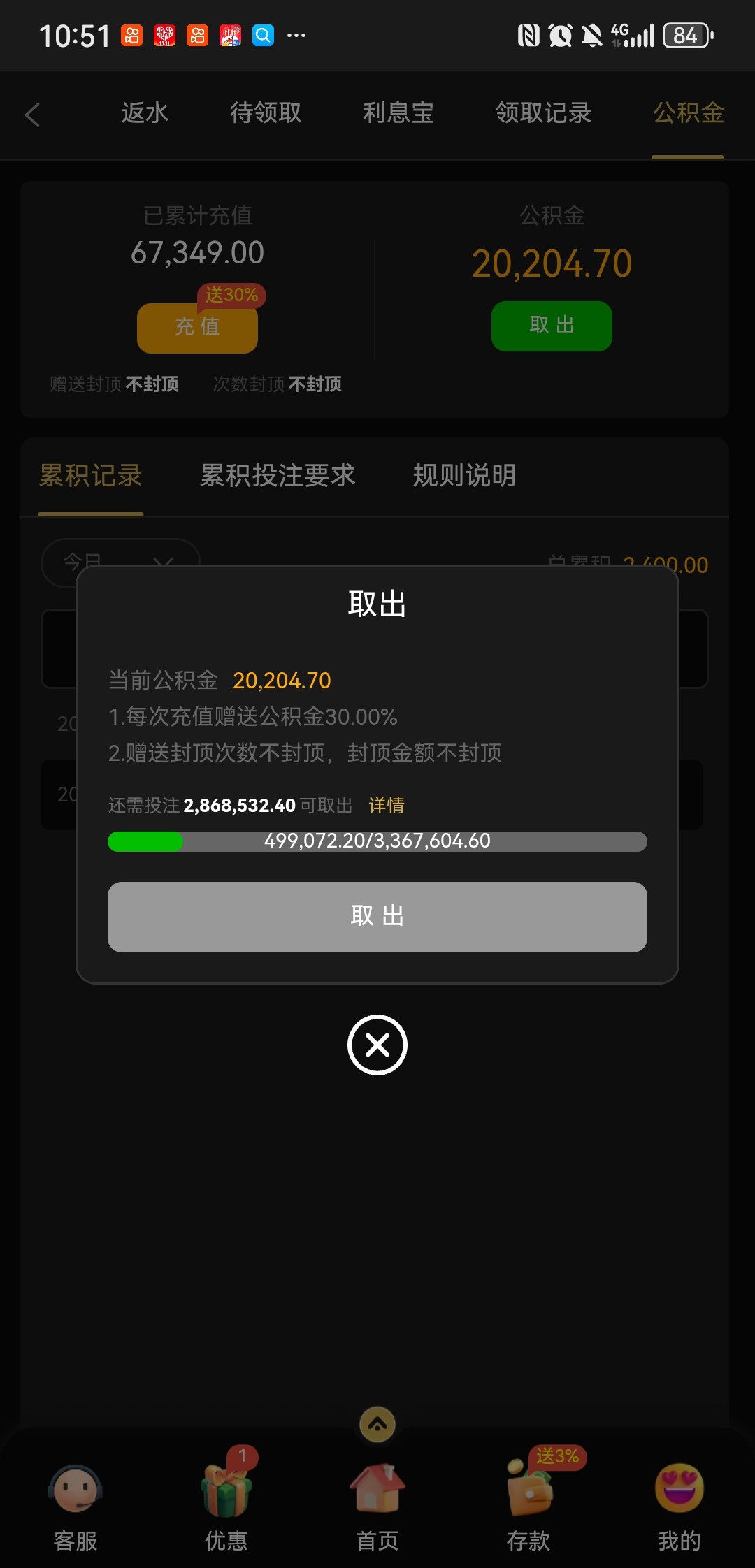 流水打够了钱也没了,等下充钱换公积金