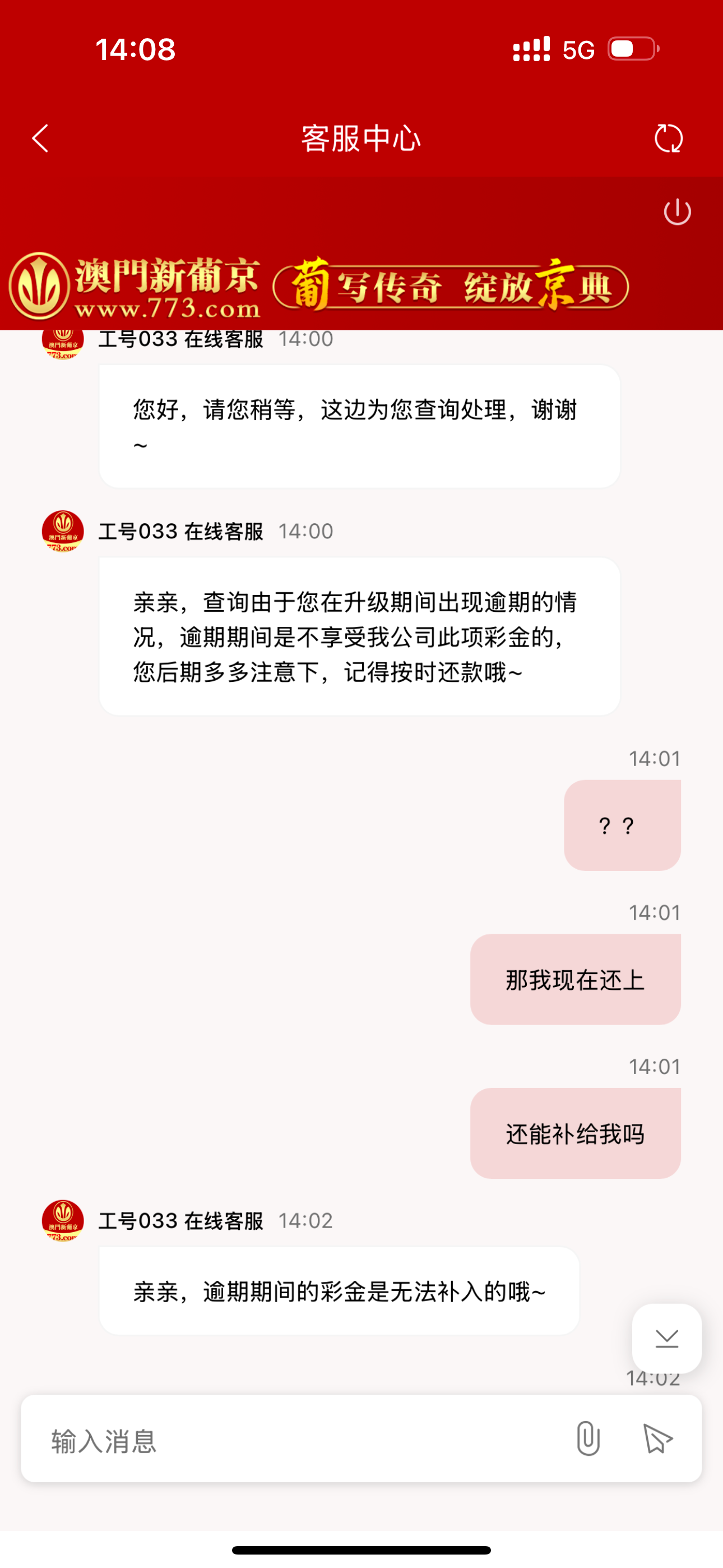 一晚上打到现在冲了1万输了6千就为了升个级结果他妈逼的直接不给了,之前逾期都是一样给现在直接明黑了,升级vip8才600块钱彩金就这样搞,它成功帮我戒赌了,老哥们狗庄套路深,有缘再见