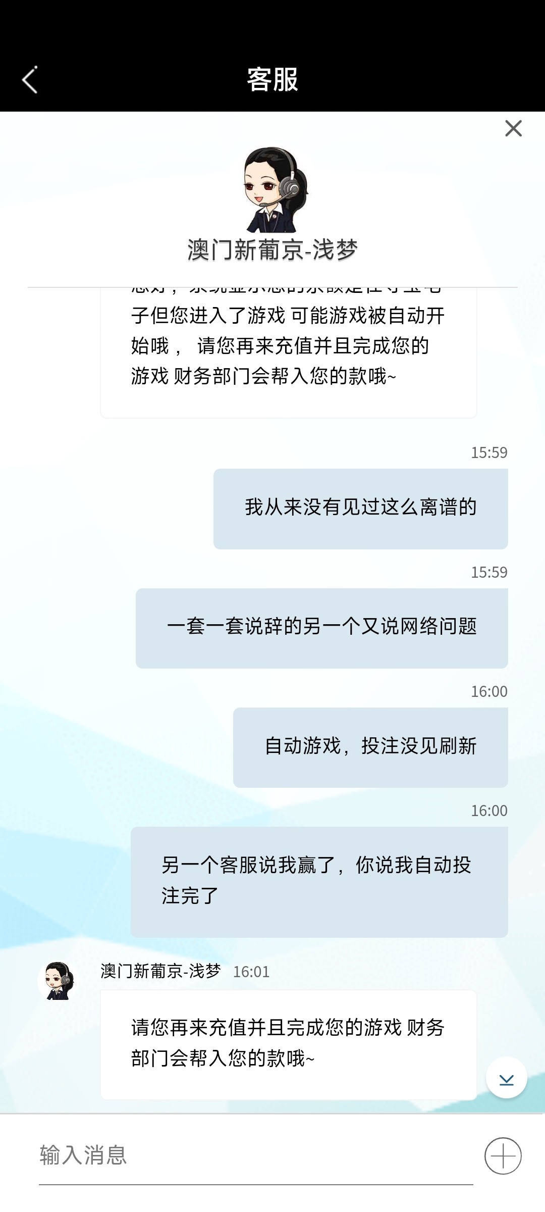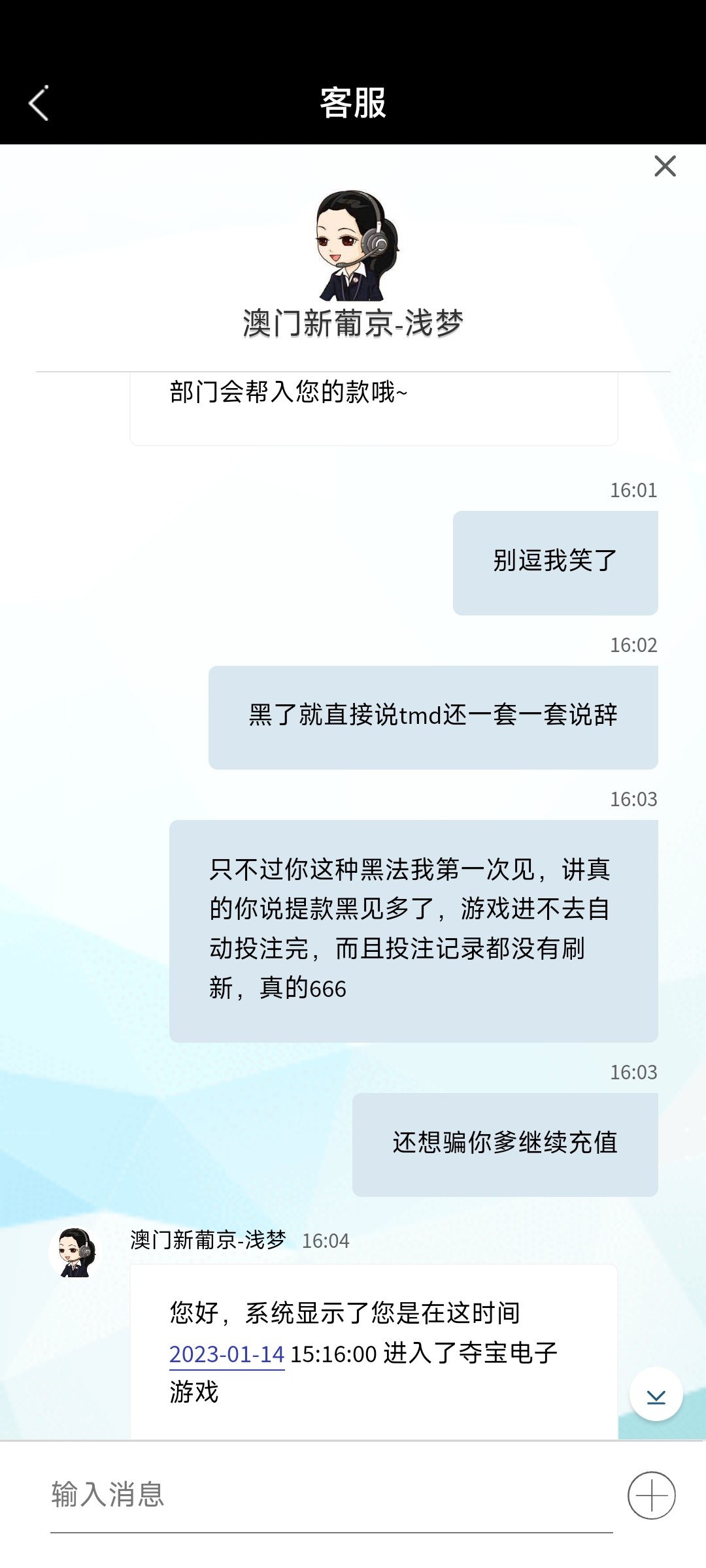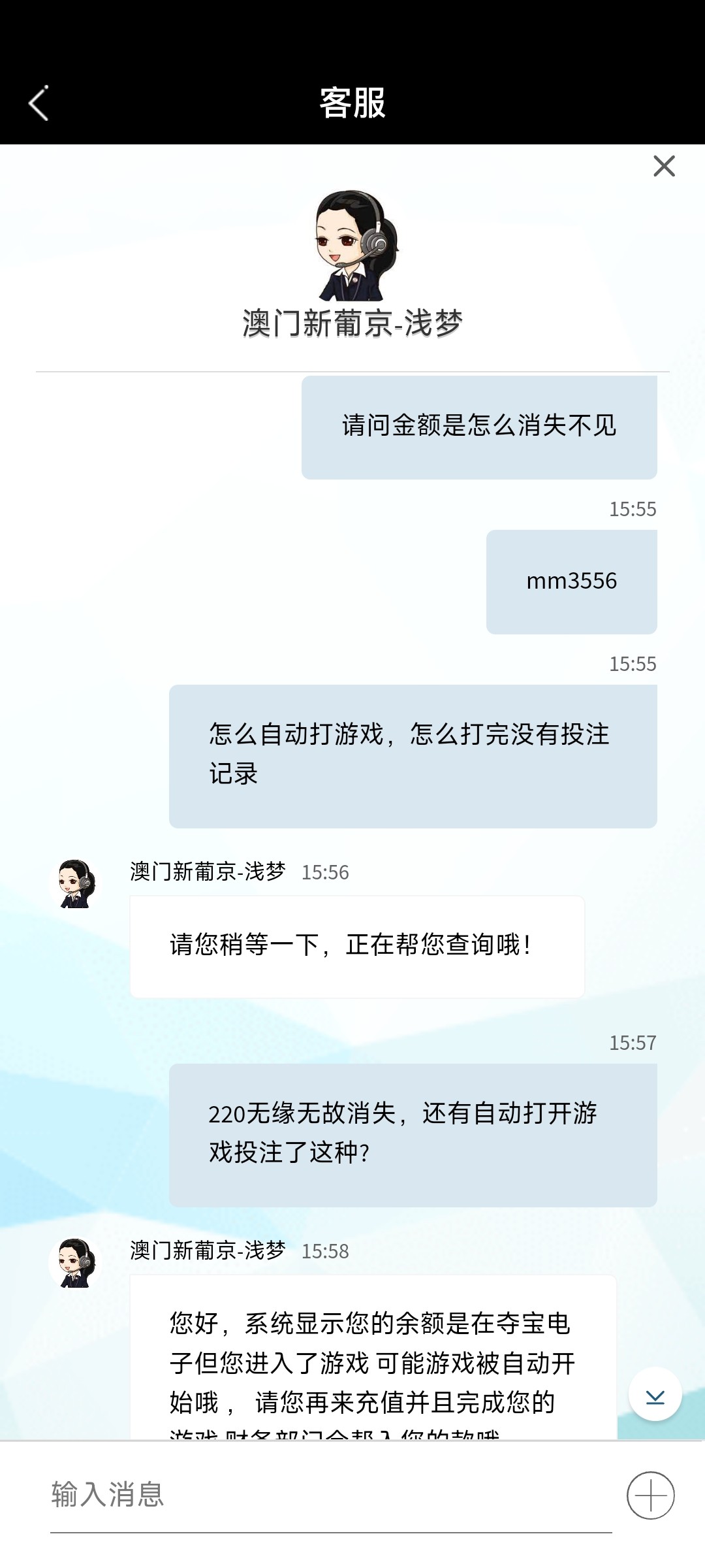 游戏进不去,说我已经进去自动下注,投注记录都不带刷新的,220金额秒不见,之前黑大额,现在小额也黑