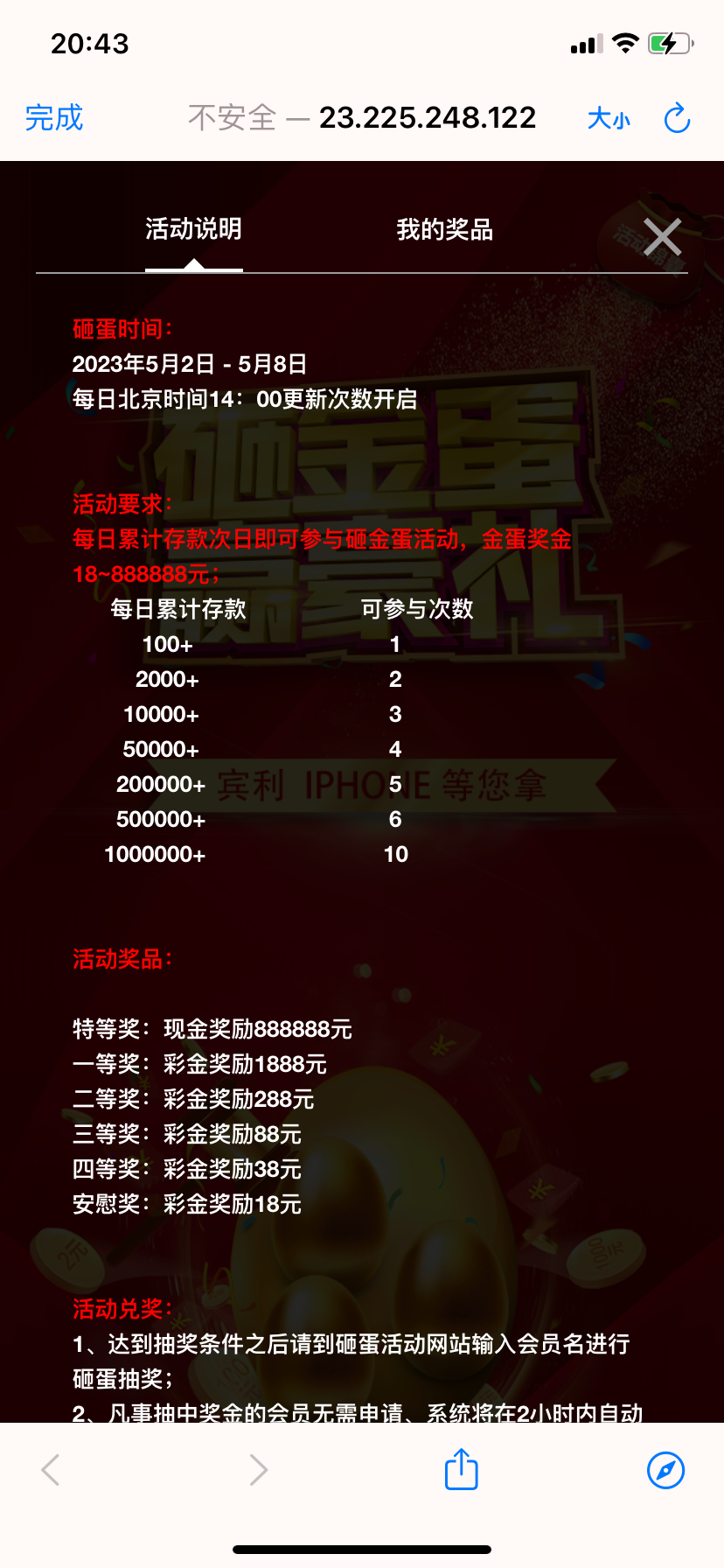 这个台子充 100 第二天 可以 砸金蛋活动, 最低 18 元 , 流水 888 还可以领 8