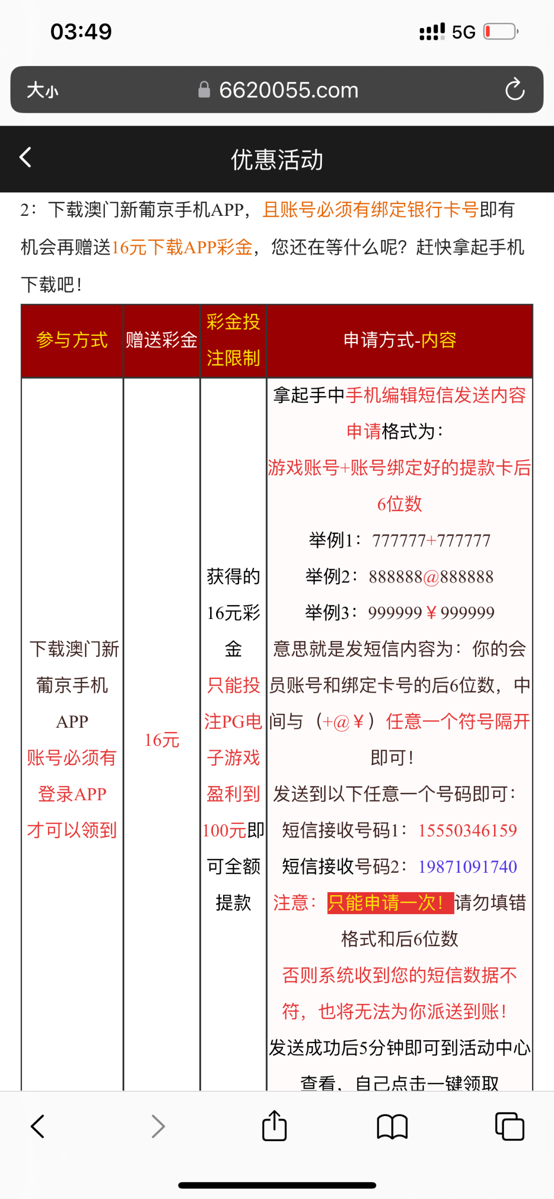 注册过662的发送短信还会秒送16彩金!操作看图片,只能提100